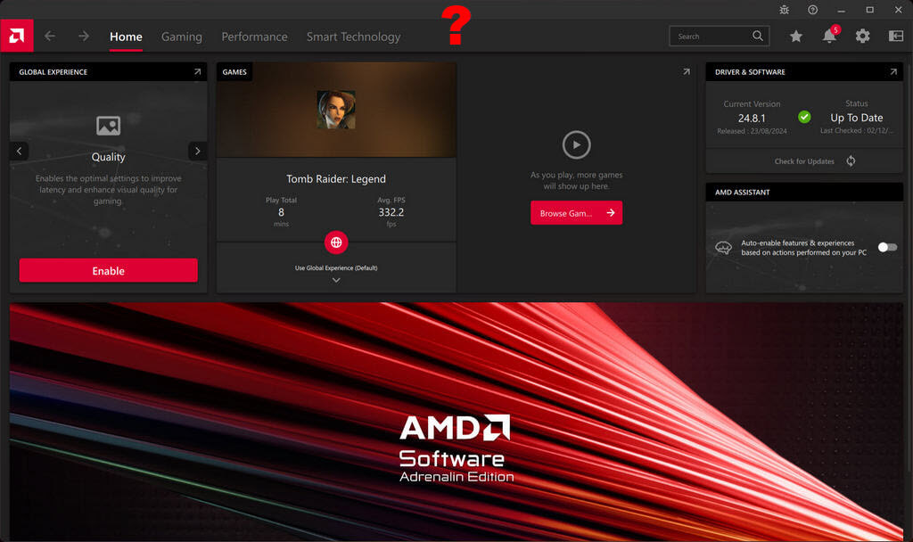 Having rolled back the software, I then looked for an iGPU (on-chip integrated graphics), but the Ryzen 7 7435HS doesn’t have integrated graphics, just a discrete RX 7700S GPU. The general internet reasoning was that the Record & Stream function would only appear when in discrete GPU mode, which turned out to be false.