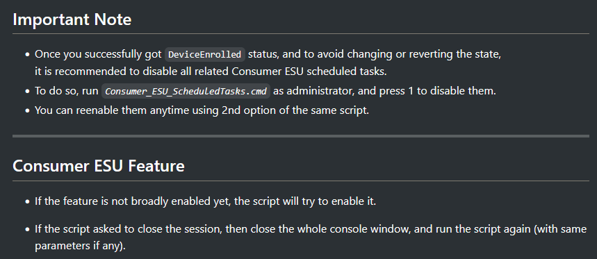 I have run the BAT file, and everything worked for me without any giddy-ups. Windows Update is telling me that I am enrolled to get ESU. It is not October 14 yet, and I don’t know if this will still work after that date. I can’t predict the future. We shall see what we shall see.