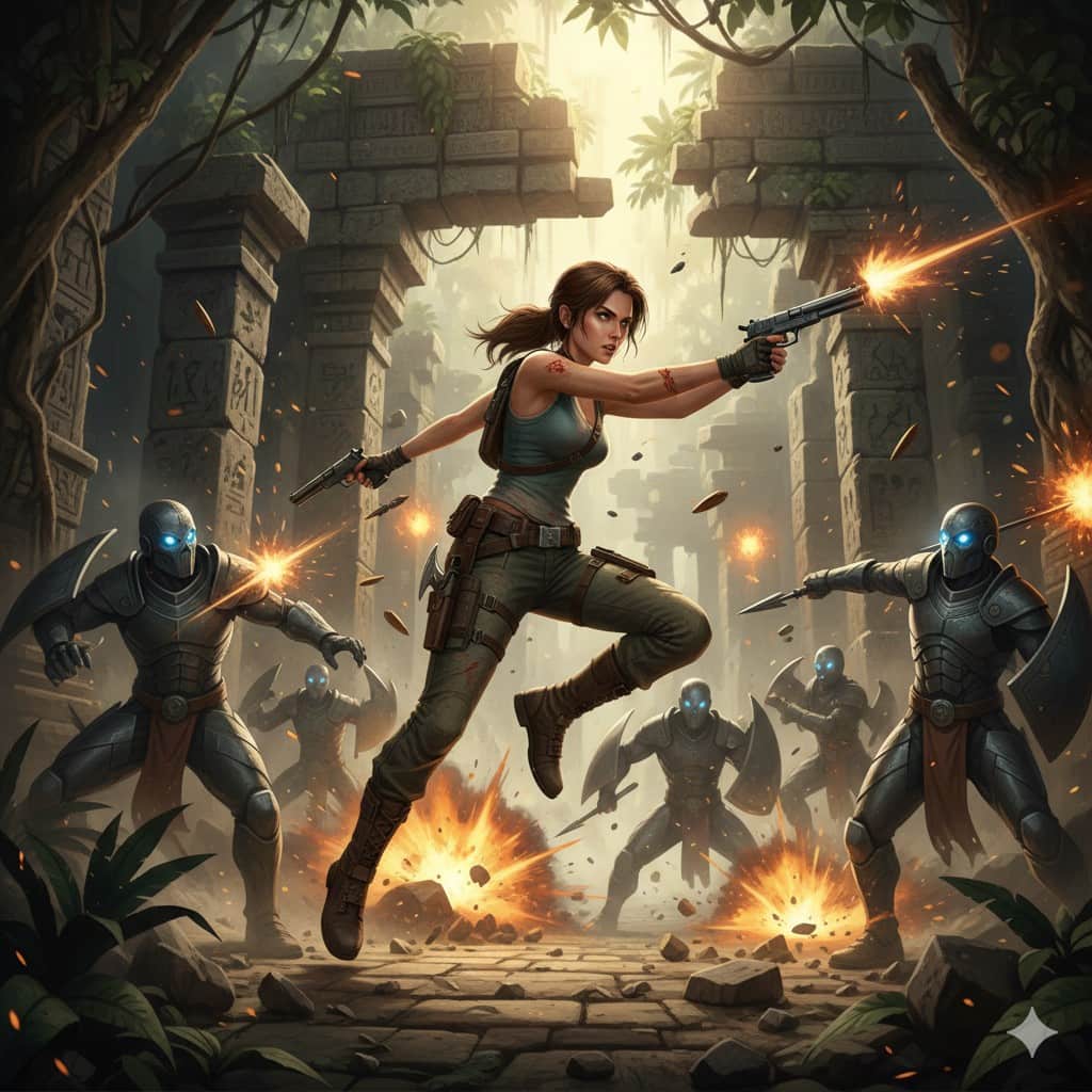 Clearly, Lara is at an advantage because she’s grown a third arm! Very handy when fighting hordes of enemy mercenaries.