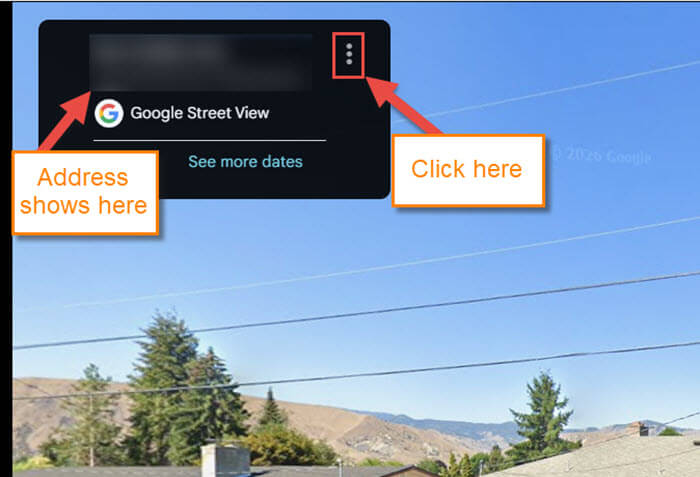 Step 3: This will bring up a larger image showing your home on Google Maps. Your address will be at the top left of the image. Click on the 3 dots next to it.
