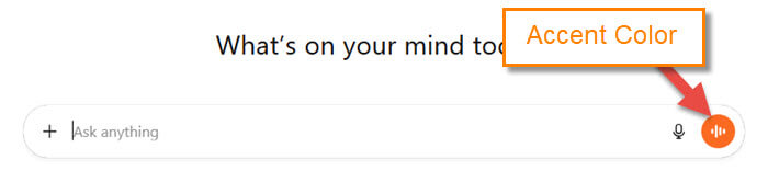 Step 7: Leave that menu, and you will see the accent color on the far right of the Ask anything box. It changes the color of the Use Voice icon. I was hoping it would have changed more than that, but this is what you get. Before we are done, I have a Bonus tip on how to do this on your Mobile phone with the ChatGPT app.