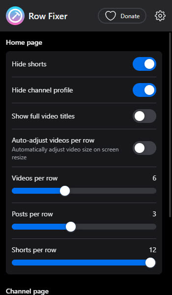 I use YouTube every single day, especially since I subscribe to Premium with no ads, and since I pay for the service, I reckon that I deserve more control over the UI, as does everyone else. In order to choose how many ranks I would like to see, I had to add the YouTube Row Fixer extension, which, by extension, reduces the thumbnail sizes when increasing the number of ranks. I changed the number of ranks to six, which is much more acceptable and easier on the eyes.