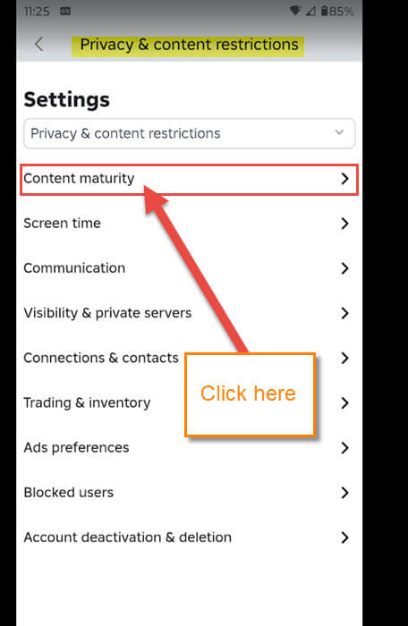 Step 4: On this next screen, tap on the Content maturity at the top.