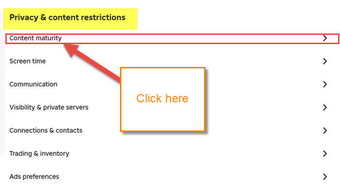 Step 4: On the Privacy screen, you will see at the top, Content maturity. Click it.