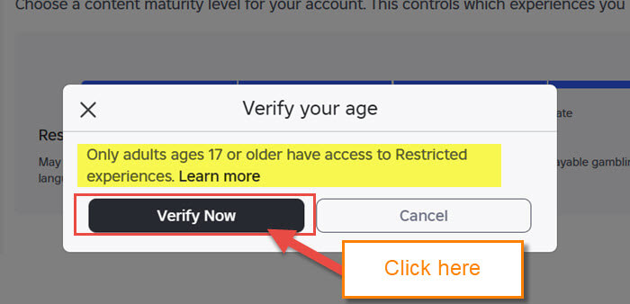 As you can see in this image, it has a button that says Verify Now. Clicking that, you will get a pop-up that will tell you what you need to do to verify your age. We are not doing that in this article. DONE!