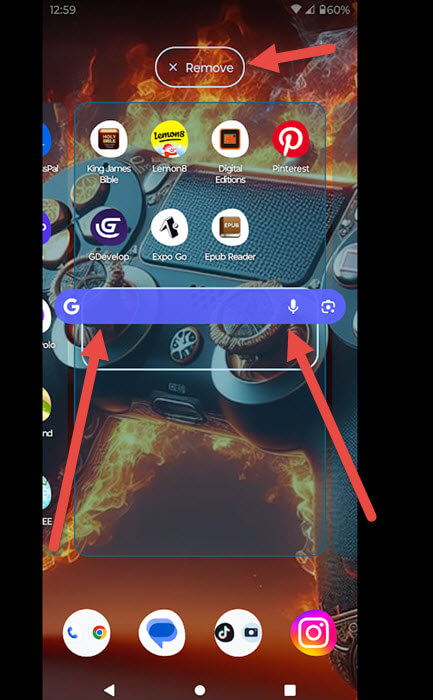 Step 9: You will be taken to the Home Screen to place your Search Widget. You can drag it to the place you want and resize it too. Drop it, and you are all good to go. You can tap the remove option at the top if you change your mind. DONE!