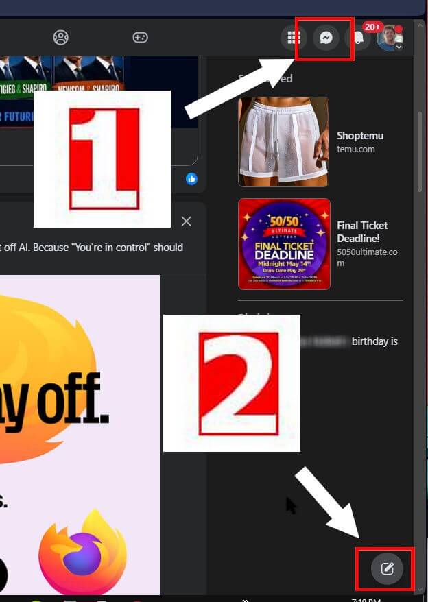 1. The first way is to click the “Messenger” button towards the top right corner of the page. This opens your contacts list.