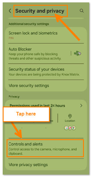 Step 3: Under the Security and Privacy screen, scroll down and find Controls and alerts.