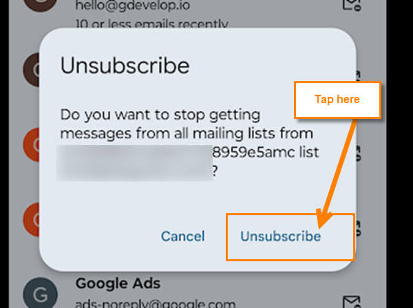 Step 5: This will bring up the Unsubscribe confirmation window. If you want to move forward, tap the Unsubscribe link in this message. DONE!