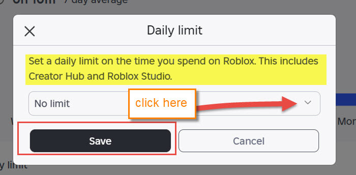 Set a daily limit on the time you spend on Roblox. This includes Create Hub and Roblox Studio.