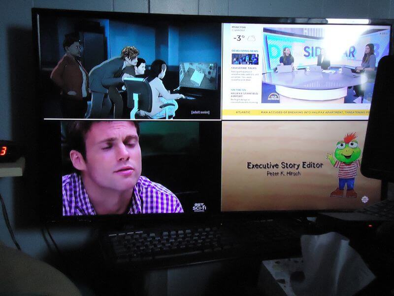 You can also change the channels within each screen. Make it active by moving the white border around it and changing the channels as you normally would.