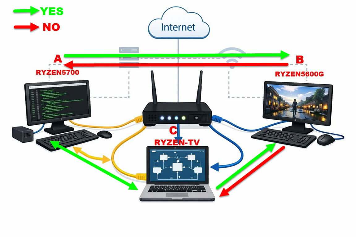 One could ask, “Why am I spending so much time on this pain in the rear?” I use computers B and C for converting VHS tapes to digital, and all three have different uses, so being able to move files about and to share them between machines is very convenient. After all, that’s what home networking is all about, isn’t it?