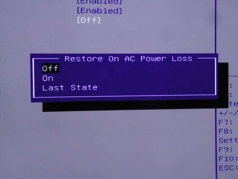 Now that the power has been restored, I have one more thing to do. I’m going into the BIOS and changing that automatic power-on setting.