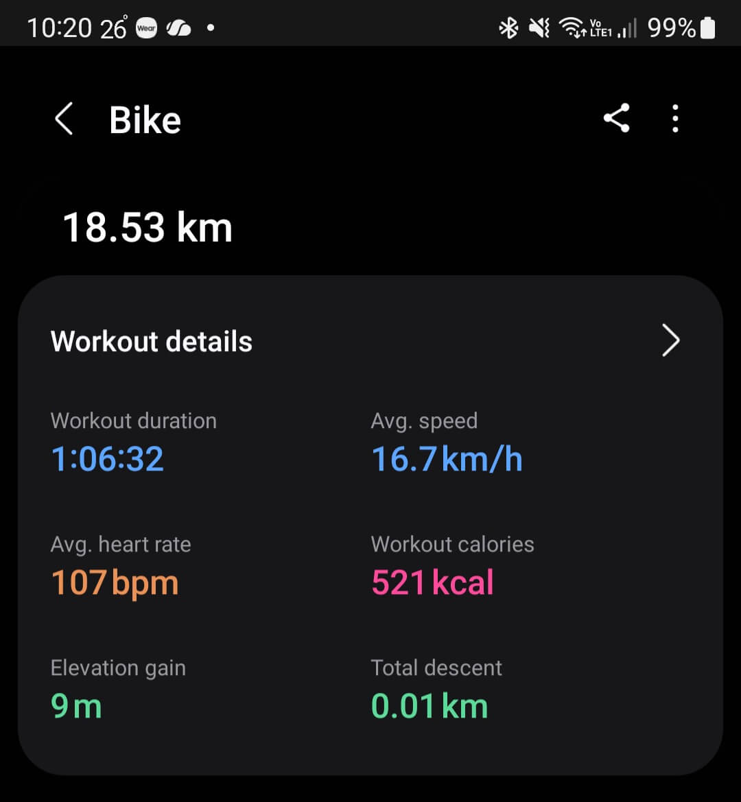 For the last couple of months, I’ve been cycling around 20 km a day, and I like to keep a log of my travels. Previously, I would need to take my phone with me until I bought the Ultra, but since it has LTE, I activated the eSIM and now leave my phone at home because the watch replaces it when I’m out and about. The watch takes a mind-boggling amount of measurements when I’m cycling – heart rate, average speed, distance, duration, VO2max (maximal oxygen consumption), and even includes a map of where I’ve been. I’m very pleased to note that my health figures are well within parameters for my age!