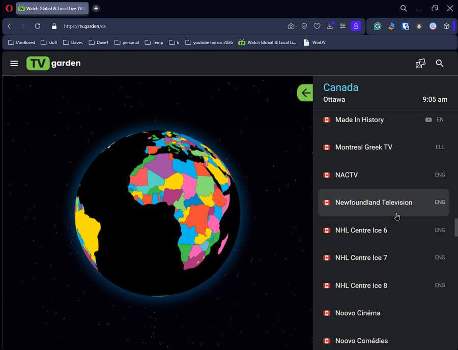 This took me to the Canadian channels available. I found one from my own province of Newfoundland and Labrador, listed as Newfoundland Television, which turned out to be our own local channel called NTV.